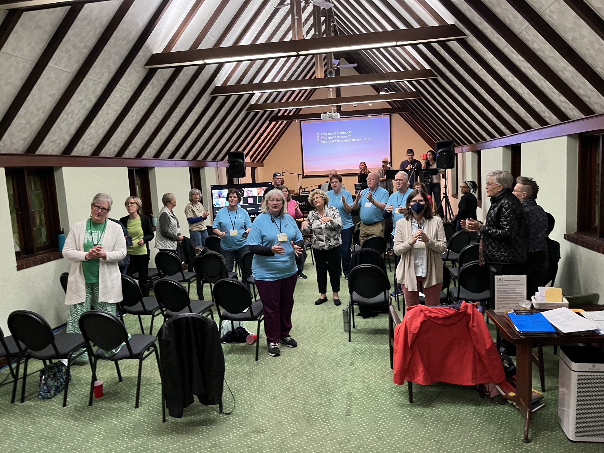 As on Sundays, music for our Prayer and Share service is often contemporary and always uplifting. At the end of the service, we encourage everyone on Zoom to unmute and enjoy some heartfelt fellowship.